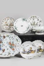Assiette en faïence à bord chantourné à décor polychrome de jetés de...