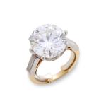 BAGUE en or gris centrée d'un diamant taille brillant de 8.22 cts épaulé de deux...