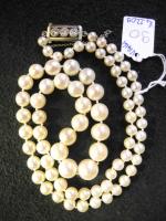 Collier de 75 perles fines rondes blanc crème en chute, diamètre 4,5 à 9,6 mm,...