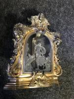 OSCULATOIRE en argent de forme architecturée à décor de trois putti et coquille encadrant...