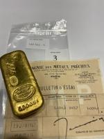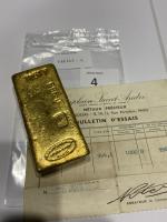 1 lingot d'or 999.4 gramme d'or fin poids brut 999.9 grammes N°33517 avec bulletin d'essai...
