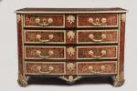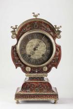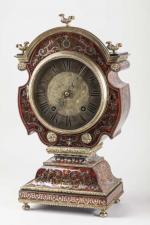 PENDULE dite à tête de poupée, de forme violonnée à décor en marqueterie Boulle sur...