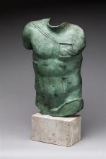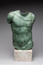 Buste en bronze à patine verte sur socle en marbre veiné. Signé et numéroté 165/1000 (ou 765/1000). H. 37 cm + socle . TR