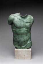 Buste en bronze à patine verte sur socle en...