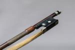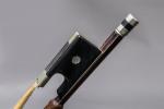 ARCHET de violoncelle Jérôme THIBOUVILLE-LAMY en bois exotique monté maillechort avec clavette d'origine et usure pouce. Poids : 86 g. JFR.