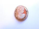 BROCHE pouvant former pendentif en or jaune 750/°° et camée sur coquillage. 2.5 x 1.8 cm. PB : 8,4 g. Griffes dessérées.