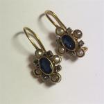 PAIRE DE POISSARDES en or jaune 750/°°, saphirs, perles fines et diamants taillés en rose. PB: 2.0 g.Petit manque.