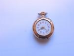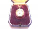 Petite MONTRE de col en or jaune 750/°°, le cadran émaillé blanc, chiffres arabes rouge...