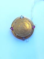 Pièce montée en BROCHE en or jaune 750/°° sertie de diamants taillés en rose et rubis. PB: 7.5 g. JC