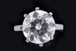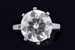 BAGUE solitaire en or 750/°° et platine 850/°° ornée d'un diamant taille ancienne de 8.74 ct (dimensions 13.55 - 13.83 x 7.61 mm), couleur K, pureté VS2 accompagné de son certificat du LFG. TDD: 54. PB: 5.7 g. Egrisures.*