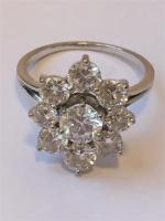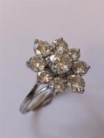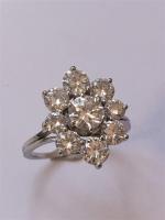 BAGUE en or gris 750/°° ornée d'un diamant central de 0.55 ct entourée de diamants taillés en brillant pour 2 ct environ. TDD: 56. PB: 4.5 g.