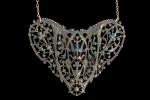 PLAQUE en métal partiellement émaillée vert à décor de rinceaux fleuris et enroulements dans le style Art Nouveau.
