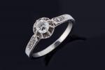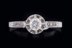 BAGUE en or gris 750/°°ornée d'un diamant de taille ancienne de 0,35 ct environ épaulé de six diamants plus petits. TDD : 54. PB : 3,1 g.