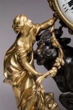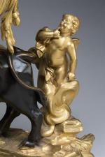 Importante PENDULE à décor de "L'enlèvement d'Europe" en bronze doré et bronze patiné, sur...