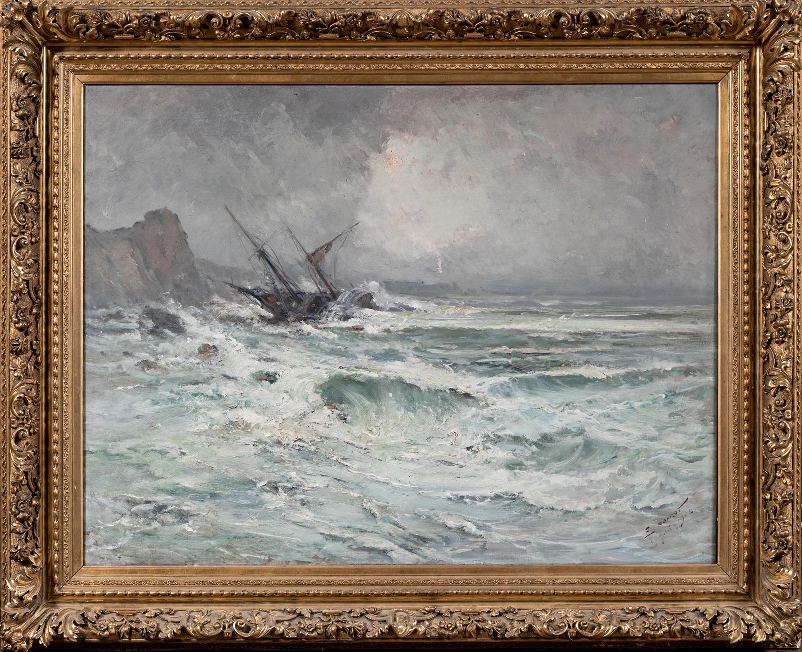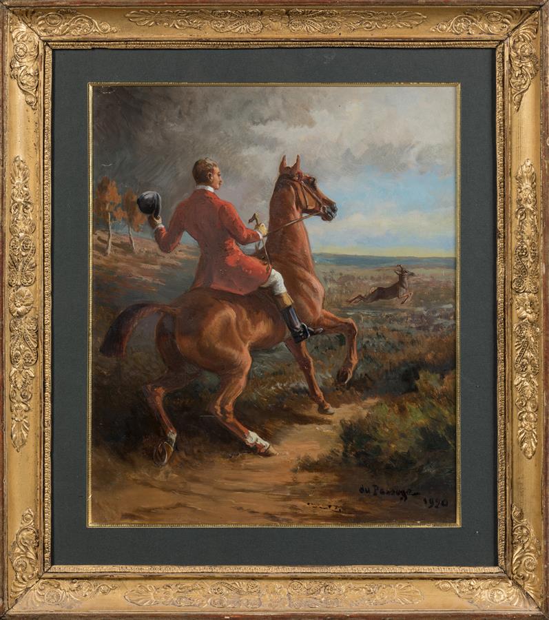Attribué à Charles-Marie DU PASSAGE (1848-1926). "La chasse à courre" 1920. Huile sur carton signé...