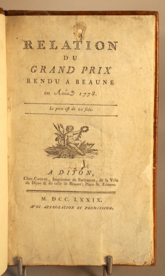 (BOURGOGNE) Relation du Grand Prix rendu à BEAUNE en Aout 1778 A Dijon, Chza Causse,...