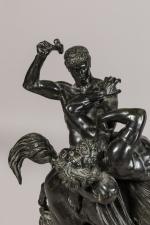 Antoine-Louis BARYE (1796-1875). "Thésée et Biénor". BRONZE à patine médaille signé sur la terrasse Louis Barye Paris 1860. Marqué sur la terasse Barbedienne fondeur à Paris et cachet collection F. Barbedienne Paris. 96 x 95 x 49 cm. Reproduit dans "Les Bronzes du XIXème siècle" par Pierre KJELLBERG en couverture.