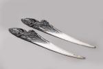 R. Gardille Deux coupe-papier en bronze à patine argentée à décor de cigognes. L. 24 cm TR