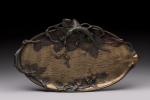 Vide-poche de forme ovale en bronze à patine polychrome à décor de lézard et feuillages. H. 24 cm L. 40 cm. TR