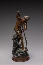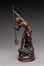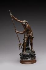 Adrien Etienne Gaudez (1845-1902) « Pécheur au trident » Bronze à patine médaille nuancée. Signé. H. 30 cm TR