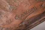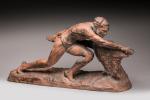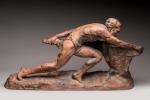 Ugo Cipriani (1887-1960) « Le batelier » Sujet en terre cuite patinée brune. Usures à la patine. Signé. H. 44 cm L. 78 cm TR