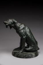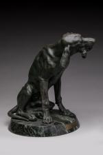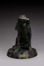 Sujet en bronze à patine nuancée sur socle en marbre veiné. Signé sur un cartouche Five o'clock par Fouques. H. 30 cm