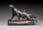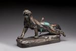 Sujet en bronze à patine brune nuancée. Oxydations et petits accidents. Signé. 31 cm L. 45 cm