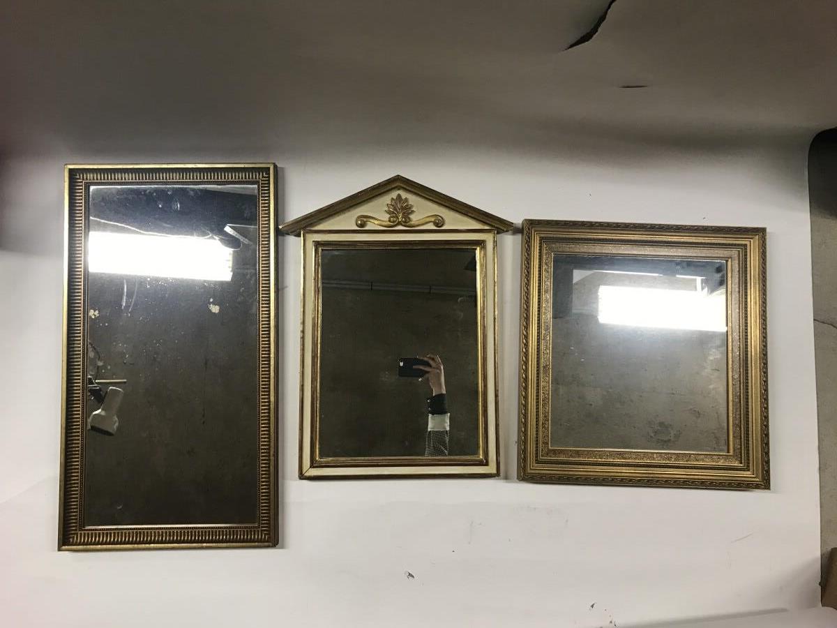Un MIROIR à chapiteau en bois laqué, et deux MIROIRS de style Louis XVI.