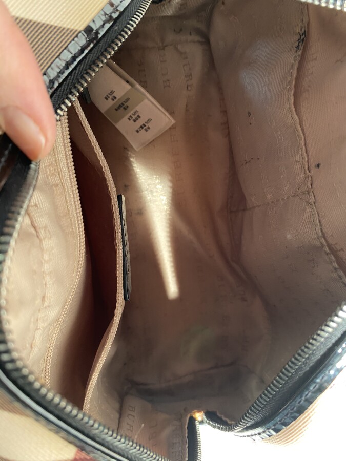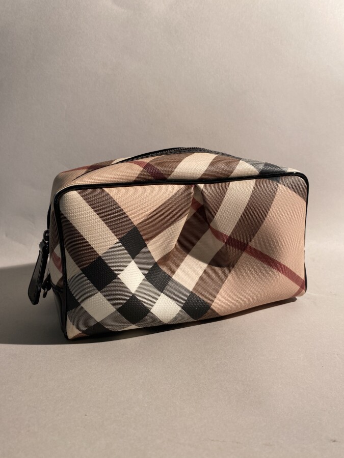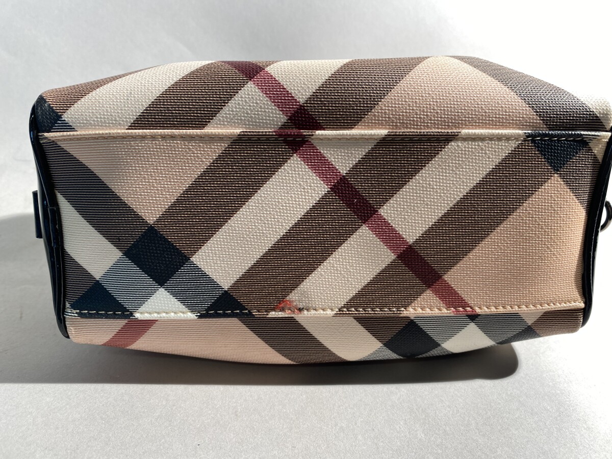 BURBERRY - TROUSSE de toilette tartan, cuir vernir noir à ouverture zippée. 20 x 7 x 12 cm. Bon état général (une petite tache intérieure)