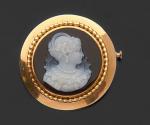BROCHE en or jaune 750/°° ornée d'un camée sur agate représentant une élégante de profil...