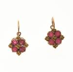 Paire de DORMEUSES en or jaune 750/°° à décor de fleur sertie de petits rubis. Poids brut :1.7 g.
