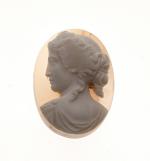 CAMEE sur agate à décor d'une femme vêtue à la grecque et tournée vers la gauche. Epoque XIXème siècle. 4.5 x 3.3 cm.