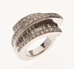 Importante BAGUE "Tourbillon" en or jaune rhodiée blanc sertie de diamants de taille brillant alternés de lignes de diamants baguette. Travail moderne. Poids brut: 20.7 g. Tour de doigt : 53.