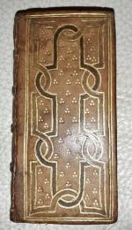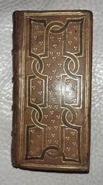 RELIURE. Très belle reliure du XVIème siècle sur: HENRI ESTIENNE, Comicurum Graecorum Geneve, Estinne, 1569. Fort in-12, reliure lyonnaise en veau, décoré d'entrelacs dorés, dos à nerfs, toutes tranches dorées. Petites restaurations. Bel exemple de reliure lyonnaise du milieu du XVIème siècle.
