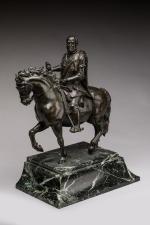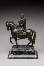 STATUE équestre en bronze patiné médaille représentant Henri IV drapé...