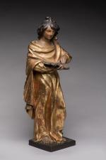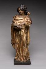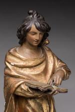 STATUE en bois polychrome stuqué et doré à décor de saint Jean Évangéliste. Époque XVIIIème siècle. H. 61 cm. Manques.