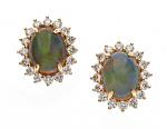 PAIRE DE BOUCLES D'OREILLES "Marguerite" en or jaune 750/°° sertie de deux opales cabochon dans un entourage de diamants. Poids brut :3.8 g.