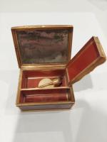 BOITE en or jaune 750/°° ciselé et gravé à décor de frises de lauriers et...