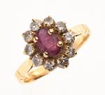 BAGUE "Marguerite" en or jaune 750/°° sertie d'un rubis ovale dans un entourage de diamants...