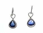 Paire de PENDANTS D'OREILLES en platine 850/°° serti chacun de diamants taillés en brillant et retenant en pampille un saphir de Ceylan de 4 ct chacun environ. H. 3 cm. Poids brut :6.5 g.