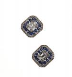 PAIRE DE BOUCLES D'OREILLES en or gris 750/°° de style Art Déco serti de diamants baguette, diamants taillés en brillant alternés de saphirs ronds. Poids brut :3.0 g.