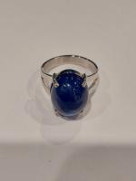 BAGUE en or gris 750/°° ornée d'un important saphir cabochon...