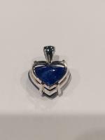 PENDENTIF en or blanc 750/°° serti d'une tanzanite de forme coeur de 14.87 ct, diamant. Certificat ALGT. H. 2.5 cm. Poids brut :5.9 g.