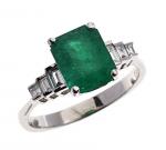 BAGUE en or gris 750/°° de style Art Déco sertie d'une émeraude de taille émeraude de 2 ct environ épaulée de diamants baguettes en escalier. Origine probable : Colombie. Tour de doigt :53. Poids brut : 3.0 g.