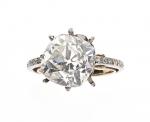 BAGUE en platine 850/°° ornée d'un important diamant coussin de taille ancienne de 5.09 ct de couleur I, pureté SI1, fluorescence faible accompagné de son examen préliminaire du LFG en date du 1.04.2022. Travail français, époque Art Déco. Tour de doigt : 50 (anneau de rétrécissement). Poids brut : 4.3 g. Ebréchure marquée. A ressertir.