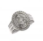 BAGUE dôme en or 585/°° ornée d'un diamants centrale taillés en brillant dans un double entourage de huit diamants taillés en brillant et de diamant taillés en baguettes. l'anneau serti de diamant en taillés en brillant et en baguettes. Poids des diamants : 2,2 cts environ. TDD : 53. PB : 8,0 g.