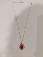 PENDENTIF et CHAINE en or jaune 750/°° orné d'un rubis ovale de 4 ct environ. Poids brut :3.1 g.