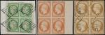 Constituée principalement de blocs de quatre timbres et plus, complétée par quelques lettres affranchies, cette collection représente plus de 330 lots, d'une grande qualité en timbres classiques.