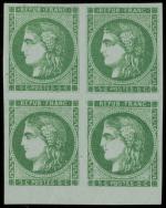 Timbre N°42B - Bloc de 4 timbres : 5c vert-jaune, bord de feuille, charnières sur 2 timbres. Signé Baudot. Cote 1900€