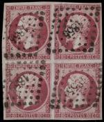 Timbre N°17B - Bloc de 4 timbres 80c rose oblitérés Petits Chiffres 1855 ; Cote 800€